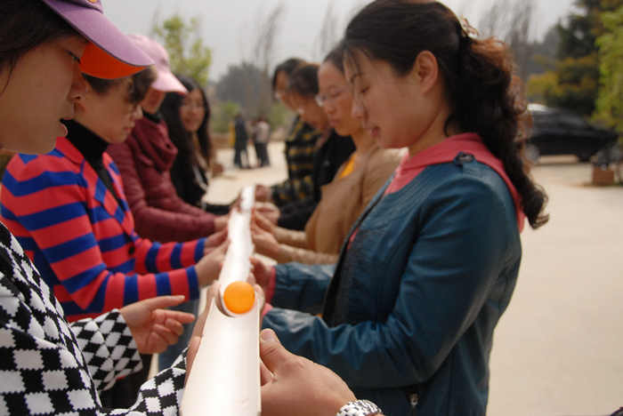 活動(dòng)中,女職工們根據教練要求本著(zhù)“忘記性別、忘記年齡、忘記層級”的精神,通過(guò)在300分鐘內順利完成“不倒森林”、“乒乓接龍”、“跳繩”、“合力顛球”、“梯形口號”等五個(gè)項目進(jìn)行分組比拼?;顒?dòng)現場(chǎng),氣氛十分熱烈、和諧。