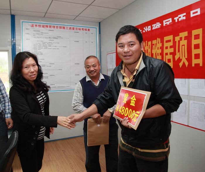 表彰會(huì )上,吳倩代表公司對項目管理人員及勞務(wù)公司取得的成果表示親切問(wèn)候與祝賀,希望參建人員同心協(xié)力,再接再勵完成12月31日的最終節點(diǎn)目標。同時(shí),吳倩再次強調清水佳湖雅居項目的重要性。清水佳湖雅居項目是公司乃至集團重點(diǎn)關(guān)注項目,項目任務(wù)完成的好壞,直接關(guān)系到公司下一步合作計劃,項目部要引起高度重視,加強質(zhì)量、進(jìn)度、安全、技術(shù)、成本管控力度,確保順利實(shí)現節點(diǎn)目標。吳倩要求項目部人員要在思想、行動(dòng)、認識上達成統一,每個(gè)環(huán)節都要監管到位,各個(gè)管理人員必須熟悉樣板,遵照樣板施工,按質(zhì)按量順利完成目標。