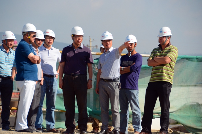 史呈森(右三)陪同下參觀(guān)工地現場(chǎng)