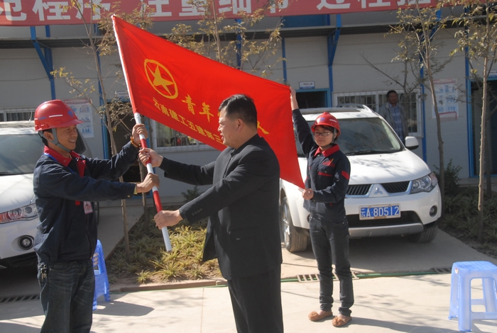 2012年11月23日,第三直管部玉溪公租房項目部青年突擊隊正式成立,公司黨委書(shū)記李興奎,黨委副書(shū)記、紀委書(shū)記吳倩等領(lǐng)導到項目部為青年突擊隊授旗,并要求要著(zhù)力將這支青年突擊隊打造成為西南西北八省區建筑業(yè)中優(yōu)秀的青年突擊隊。