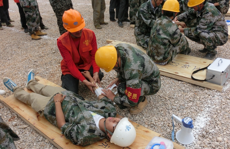 為配合安全生產(chǎn)月活動(dòng),晉寧縣安企居住區指揮部組織了本次應急演練,安企居住區十二家兄弟公司集聚五〇三直管部施工的第四標施工現場(chǎng),積極進(jìn)行演練。五〇三直管部共有180人參加了這次演練,通過(guò)對三項突發(fā)事故的演練,提高了工作人員對突發(fā)事故的處置能力。