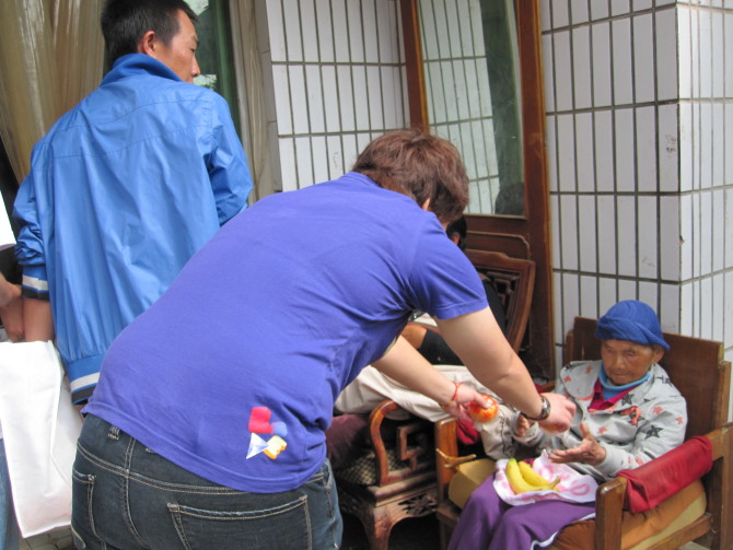 年輕人們提前買(mǎi)好了水果和蔬菜,在養老院里親自把水果分發(fā)給老人,并陪著(zhù)老人們聊天。中午12點(diǎn),大家一起做好飯,陪老人們共進(jìn)中餐。養老院的老人們很開(kāi)心,一位愛(ài)唱歌的老人還特意為大家唱了一首歌。