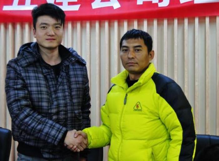圖為翰業(yè)造價(jià)公司副總經(jīng)理李云輝(右)與翰業(yè)職工簽訂協(xié)議后合影