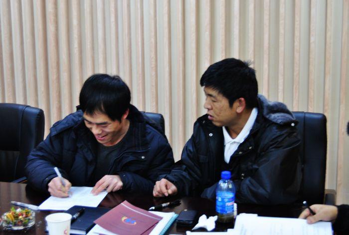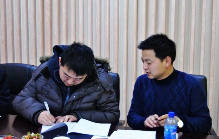圖為經(jīng)營(yíng)部副部長(cháng)張棟梁(右)與經(jīng)營(yíng)部職工簽訂師徒協(xié)議