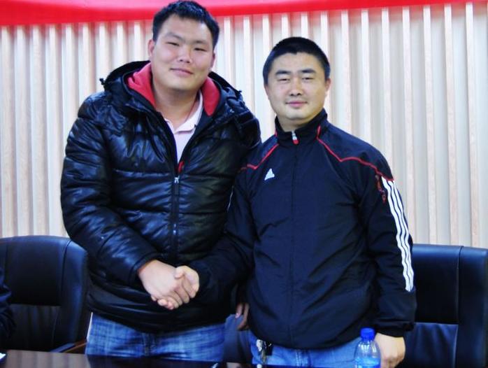 圖為會(huì )上公司副總經(jīng)理張迎躍(右)與翰業(yè)造價(jià)公司副總經(jīng)理李成(左)合影