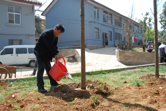 圖為公司董事長(cháng)、黨委書(shū)記楊福和在為樹(shù)苗澆水。