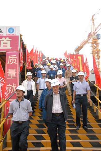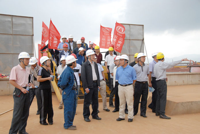 7月14日,省、市、區建設行政主管部門(mén),安全生產(chǎn)監督部門(mén)和昆明新機場(chǎng)建設指揮部的領(lǐng)導和專(zhuān)家蒞臨五有限公司新機場(chǎng)項目部檢查和指導工作,在參觀(guān)了停車(chē)樓工程現場(chǎng)施工情況后,召開(kāi)昆明新機場(chǎng)建設施工安全質(zhì)量標準化工作現場(chǎng)會(huì )。會(huì )上,省建設廳副廳長(cháng)郭五代向五公司頒發(fā)了獎牌和證書(shū)。