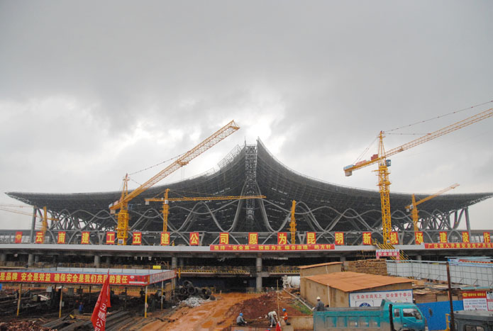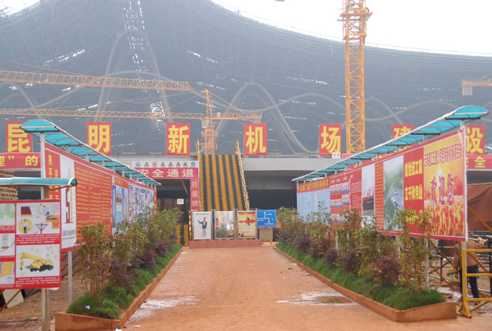 隨著(zhù)昆明新機場(chǎng)航站樓屋頂鋼網(wǎng)架金屬屋面的封頂,一只振翅欲飛的大鵬已初具雛形。在大鵬腳下默默奮戰了幾百個(gè)日夜的公司新機場(chǎng)直管部,也即將迎來(lái)一場(chǎng)決定性戰役。2010年6月25日,新機場(chǎng)停車(chē)樓及高架橋工程決戰190天誓師動(dòng)員大會(huì )在公司新機場(chǎng)直管部會(huì )議室召開(kāi)。