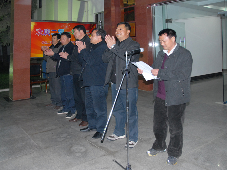 公司常務(wù)副總經(jīng)理李文智代表公司發(fā)表2010年新年祝辭,向一年來(lái)辛勤工作、為公司發(fā)展做出貢獻的廣大職工、家屬同志們致以新年的問(wèn)候;公司董事長(cháng)、黨委書(shū)記楊福和宣布焰火晚會(huì )開(kāi)始。