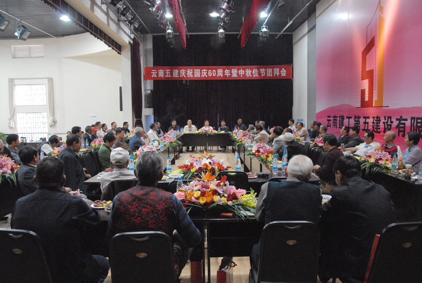 五建設有限公司于9月25日召開(kāi)慶祝新中國建立六十周年國慶暨中秋佳節團拜會(huì ),離退休的公司原老領(lǐng)導、老勞模、老同志以及調任上級部門(mén)和兄弟單位領(lǐng)導代表與現任公司領(lǐng)導班子成員齊聚一堂,結合公司發(fā)展暢談國家發(fā)展變化。