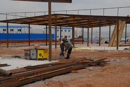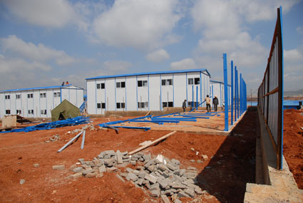 根據公司的部署,新機場(chǎng)工程項目部不等不靠,抓緊一切可以開(kāi)展工作的時(shí)機及時(shí)開(kāi)展A3合同段施工前期工作。目前,三臺塔吊已經(jīng)安裝就位,正在進(jìn)行鋼纜安裝;三個(gè)鋼筋加工場(chǎng)正在搭建鋼結構防雨棚;配電房正在進(jìn)行屋面施工;辦公區板房搭建完成,生活區建設正加緊進(jìn)行;辦公區和生活區彩鋼板圍欄施工基本完成;施工區已全部完成周?chē)匿摴埽踩W(wǎng)圍護;基礎已完成10個(gè)承臺基坑的土方開(kāi)挖施工;施工管理人員在進(jìn)行放線(xiàn)作業(yè)。