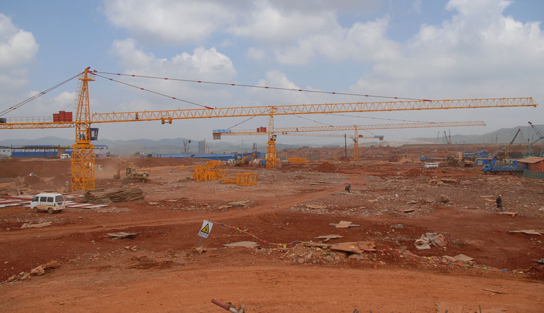 A3 臨設施工進(jìn)行中。背景是先期開(kāi)工、已在進(jìn)行主體結構施工的航站樓工程。