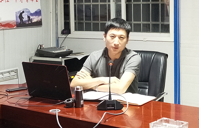 晚上8點(diǎn)30分,榮凱圍繞“不忘初心、牢記使命”主題教育、習近平新時(shí)代中國特色社會(huì )主義思想、公司職代會(huì )確定的年度目標任務(wù)以及項目部實(shí)際工作,深入講解了四個(gè)方面的內容,并認真聽(tīng)取了直管部、項目部對進(jìn)一步抓好“不忘初心 牢記使命”主題教育的意見(jiàn)建議。