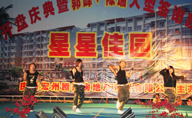 3月25日,建設單位德宏州騰達房地產(chǎn)開(kāi)發(fā)有限公司根據施工進(jìn)度舉行了盛大的星星佳園開(kāi)盤(pán)儀式暨答謝晚會(huì ),邀請國家一級演員、著(zhù)名歌星郭峰、陳瑞等為盈江人民和關(guān)聯(lián)客戶(hù)獻演了一臺精彩的晚會(huì )。