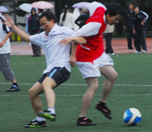 在晚秋的霏霏細雨中,五建五分公司與公司機關(guān)于11月4日舉行了一次足球友誼賽,活躍職工業(yè)余文化生活,增進(jìn)友誼。 伍軒 攝影