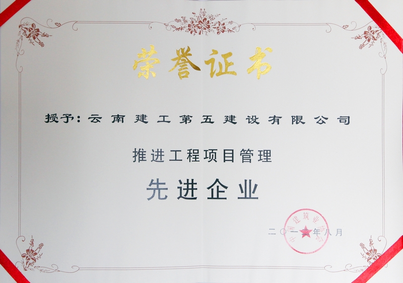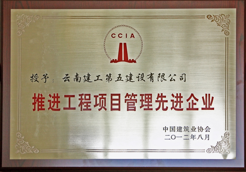 公司榮獲的“推進(jìn)工程項目管理先進(jìn)企業(yè)”證書(shū)
