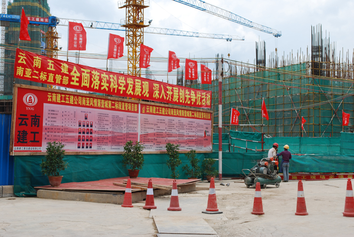 4月20日,甲方給二標下達必須在5月15日之前完成筏板約17000㎡的結構施工任務(wù)。但此時(shí)A2地塊的大部分作業(yè)面正作為一同在南亞風(fēng)情第壹城施工的其它施工單位的交通運輸要道,這使本來(lái)就很緊湊的工期變得更為局促;加之,甲方根據天氣預報,又預測到5月15日以后昆明地區將遭遇大雨,若不按期完成,必將給整個(gè)南亞風(fēng)情園工程帶來(lái)不可估量的經(jīng)濟損失,同時(shí),也會(huì )給五公司承接南亞地產(chǎn)新項目造成直接的負面影響。整個(gè)五公司都為二標捏了一把汗,動(dòng)工挖土就意味著(zhù)失去施工道路和材料堆放場(chǎng)地,而且A2地塊地下水位高、深坑多且有流砂層等地質(zhì)情況復雜,致使二標面臨一次前所未有的考驗。面對這嚴峻的形勢,二標的同志們鼓起勇氣、克服困難,以飽滿(mǎn)的熱情迎接挑戰,編制了詳細可行的施工組織計劃方案,確切落實(shí)工程量、物資供應、勞動(dòng)力組合等一切基礎性保障工作。下面的場(chǎng)景可想而知:二標的施工場(chǎng)地上完全沒(méi)有了白天和黑夜的區別,白天是火熱的太陽(yáng),夜晚是通明的燈火,每位管理人員每天最多可睡六、七個(gè)小時(shí)。在這日夜奮戰、艱苦卓絕的日子里,5月3日甲方任主席、劉總經(jīng)理、蘇副總經(jīng)理和公司方總經(jīng)理、張副總經(jīng)理等領(lǐng)導對堅持在一線(xiàn)的所有施工人員進(jìn)行了親切的慰問(wèn)及鼓勵,并帶來(lái)了人手一份慰問(wèn)品;5月7日,公司楊董事長(cháng),李副總也親臨施工現場(chǎng),給予關(guān)懷和支持。同時(shí),二標的精神也感動(dòng)了中廣源混凝土公司的許總經(jīng)理并攜慰問(wèn)品于5月10日晚到現場(chǎng)給予鼓勵,所有這些關(guān)懷和鼓勵給二標的同志們增強了必勝的信心和動(dòng)力。5月15日,二標交出令甲方滿(mǎn)意的答卷。當問(wèn)起年輕的工長(cháng)們想要什么獎勵時(shí),他們異口同聲回答“好好睡兩天覺(jué)”。正是這次任務(wù)的圓滿(mǎn)完成,讓人們對二標這支年輕的隊伍有了新的認識:這支隊伍原為五公司景秀西苑第二標段項目部,是一支由16名成員組成的平均年齡只有28歲的富有活力和斗志的團隊,其中7名中共黨員、5名共青團員為項目骨干。在景秀西苑項目施工期間,這支隊伍就以?xún)?yōu)質(zhì)、高效、安全、節約的項目管理獲得了公司“青年文明項目部”稱(chēng)號,得到景秀西苑甲方——云南省房地產(chǎn)開(kāi)發(fā)公司的書(shū)面通報表?yè)P,并多人多次獲得公司“先進(jìn)個(gè)人” 、“優(yōu)秀黨員”等榮譽(yù),其中,項目主工長(cháng)于2010年被評為“省級優(yōu)秀團干”榮譽(yù)稱(chēng)號。而南亞風(fēng)情第壹城A區(A2、A3區域)這個(gè)新的施工任務(wù),是對這支生力軍的又一次新的機遇和挑戰。