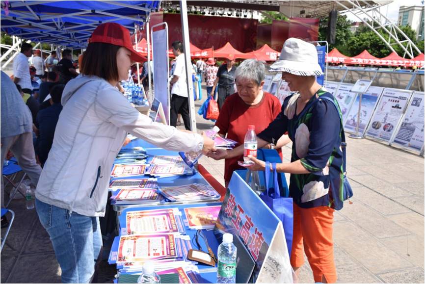 6月14日下午,路橋四部安全部員工代表彌玉高速參加了駐地所在地玉溪市的“安全生產(chǎn)咨詢(xún)日”活動(dòng)。本次活動(dòng)在玉溪市聶耳廣場(chǎng)進(jìn)行,項目部通過(guò)設立咨詢(xún)臺、發(fā)放宣傳資料及展出展板形式向玉溪市廣大市民宣傳安全生產(chǎn)基本知識。