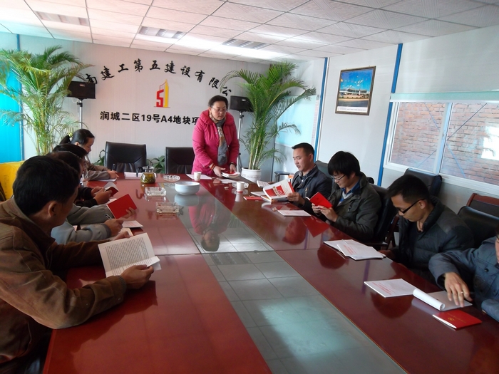 2012年12月13日,第五直管部黨支部組織潤城項目部學(xué)習了新黨章,在會(huì )上為黨員們發(fā)放新黨徽,并要求今后黨員必須佩戴黨徽上班。 由于工期緊,項目部不能集中進(jìn)行詳細的學(xué)習,黨支部書(shū)記周雯給大家簡(jiǎn)要講解了《新黨章》和十八大精神,然后將兩項內容的學(xué)習資料發(fā)到了每一名黨員的手中。 第五直管部潤城項目部目前共有7名黨員。 第五直管部 王海燕/攝影報道