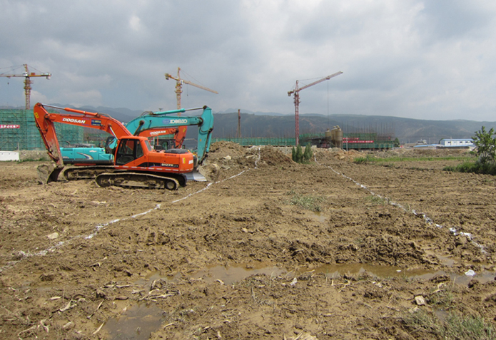 項目部成立后,先后測出1至5號地塊方格網(wǎng),積極組織機械設備和人員入場(chǎng),推進(jìn)幾個(gè)地塊的場(chǎng)地平整工作。