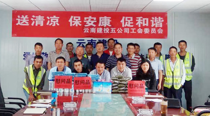 5月23日,近40度的高溫下,公司副總經(jīng)理施文鐘帶隊奔赴第七直管項目部施工的蘭坪縣營(yíng)盤(pán)鎮易地扶貧搬遷項目、蘭福公路項目調研,并代表公司領(lǐng)導班子,與公司工會(huì )人員開(kāi)展“送清涼、保安康、促和諧”的送清涼慰問(wèn)活動(dòng)。