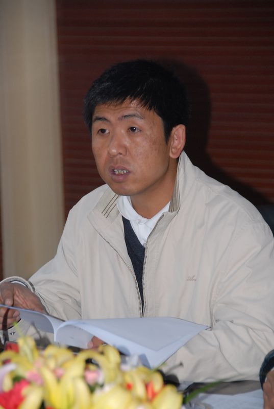 圖為公司經(jīng)營(yíng)部副部長(cháng)張棟梁在會(huì )上通報各單位2011年的經(jīng)營(yíng)狀況