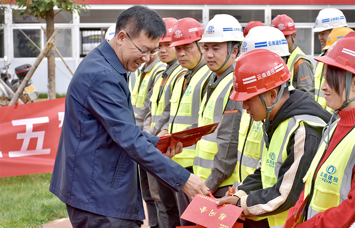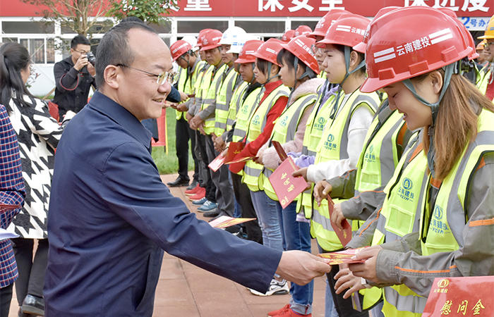 9月18日上午,集團公司黨委副書(shū)記、工會(huì )主席陳文雙到公司云南綠色能源產(chǎn)業(yè)園區項目對奮戰在一線(xiàn)的114名項目管理人員和50名民工代表進(jìn)行慰問(wèn),集團工會(huì )副主席趙艷波,公司黨委書(shū)記、副董事長(cháng)張曉峰,總經(jīng)濟師呂榮偉,工會(huì )主席冷蕊參加慰問(wèn)。