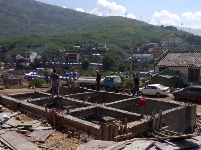 直九部:魯甸龍頭山災后重建樣板房基礎澆筑完成