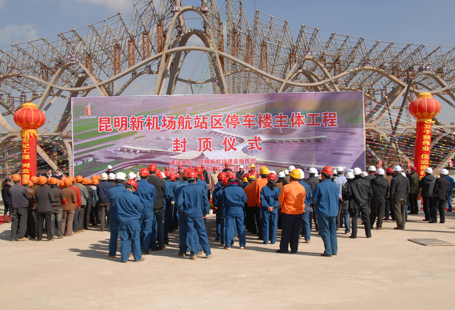 由云南建工第五建設有限公司昆明新機場(chǎng)項目部施工的昆明機場(chǎng)停車(chē)樓主體工程,于2009年12月28 實(shí)現結構封頂,封頂儀式是日在昆明新機場(chǎng)項目部建設工地隆重舉行。 五建公司總經(jīng)理、五建昆明新機場(chǎng)項目部經(jīng)理方菊明主持儀式; 五建董事長(cháng)、黨委書(shū)記楊福和介紹了施工組織管理基本情況,并表示了要...