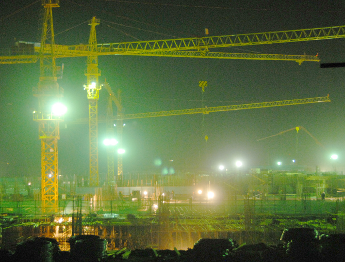 11月27日晚上,當別人歡度周末之時(shí),云南五建昆明新機場(chǎng)項目部員工仍在緊張施工,進(jìn)行B3頂板及梁體混凝土澆筑。 高玉和 攝影報道
