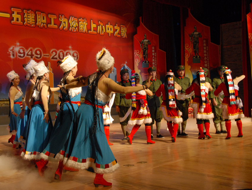 云南建工第五建設有限公司于9月28日晚在公司禮堂隆重舉辦以《祖國――五建職工為你獻上心中的歌》為主題的文藝晚會(huì ),慶祝中華人民共和國建立六十周年。來(lái)自公司和基層22個(gè)單位的700多 名職工,共演出了19個(gè)節目,以飽滿(mǎn)的熱情祝福偉大的社會(huì )主義祖國,用嘹亮的歌聲抒發(fā)對偉大祖國的熱愛(ài),以昂揚的斗志表達實(shí)現公司跨越式發(fā)展的決心。云...