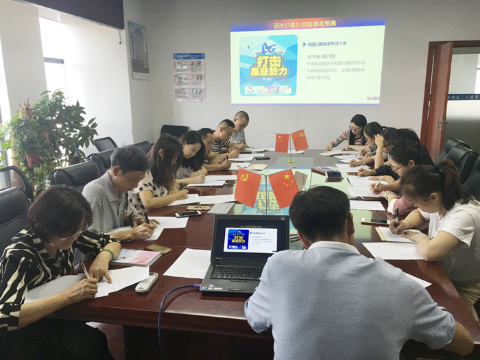 4月26日下午,路橋二部黨支部開(kāi)展掃黑除惡專(zhuān)項活動(dòng),黨員及二線(xiàn)部門(mén)干部職工共16人參加。 會(huì )議集中學(xué)習了《關(guān)于在全省開(kāi)展掃黑除惡專(zhuān)項斗爭的通告》《云南省國資委黨委關(guān)于轉發(fā)省委組織部開(kāi)展“掃黑除惡——基層黨組織在行動(dòng)”活動(dòng)周的通知》等掃黑除惡專(zhuān)項斗爭的文件,傳達了公司掃黑除惡推進(jìn)會(huì )精神,觀(guān)看了《開(kāi)展掃黑除惡專(zhuān)項斗爭宣傳手冊》及公司紀委要求觀(guān)看的《清風(fēng)云南——破“網(wǎng)”拔“...