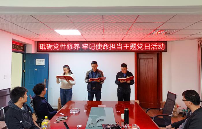 5月25日,第七直管項目部黨支部開(kāi)展“砥礪黨性修養 牢記使命擔當”主題黨日活動(dòng),7名在昆黨員參與活動(dòng)。會(huì )上,黨支部書(shū)記領(lǐng)學(xué)了習近平總書(shū)記在慶祝中國共產(chǎn)主義青年團成立100周年大會(huì )上的重要講話(huà)精神。隨后帶領(lǐng)全體黨員面向鮮紅的黨旗,舉起右手、握緊拳頭,莊嚴宣誓,“我志愿加入中國共產(chǎn)黨,擁護黨的綱領(lǐng),遵守黨的章程,履行黨員義務(wù)……”一句句鏗鏘有力的誓詞響徹整個(gè)會(huì )議室,震撼現場(chǎng)每個(gè)人的心靈。通過(guò)重溫入黨誓…
