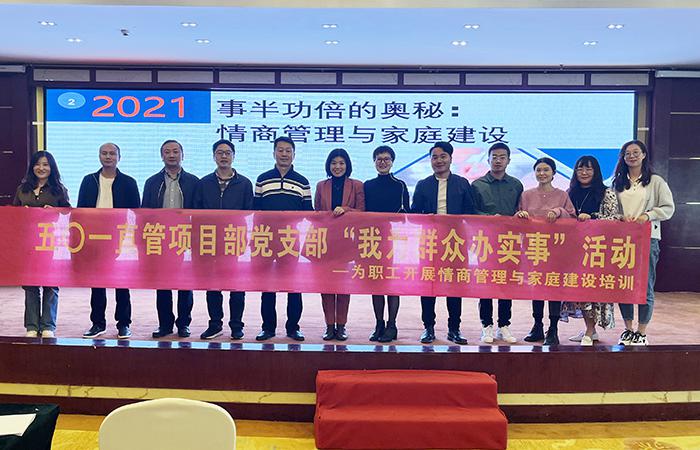 11月5日至6日,五〇一直管項目部黨支部聯(lián)合云南滇中保障房建設有限公司在經(jīng)貿賓館三樓共同開(kāi)展了“我為群眾辦實(shí)事”活動(dòng),為職工開(kāi)展《情商管理與家庭建設》培訓,云南滇中保障房建設有限公司總經(jīng)理茶本偉,副總經(jīng)理彭澤利,五〇一直管項目部經(jīng)理陳永忠,黨支部書(shū)記王敏等共計100余人參加。此次培訓,特別邀請深圳市著(zhù)名講師嚴紅艷為大家授課,從“情商—修煉情商的五個(gè)能力”“表達—簡(jiǎn)潔有力的溝通技巧”“溝通—多場(chǎng)景溝…