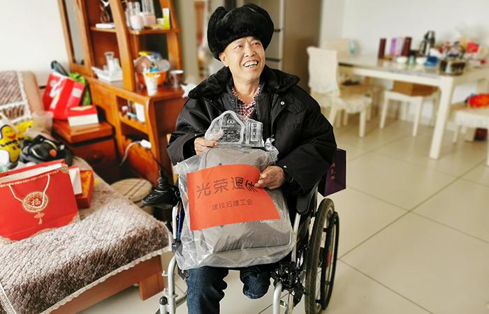 1月12日上午,冬日的寒風(fēng)凌冽,卻擋不住五〇五直管部工會(huì )、綜合辦、后勤部職工代表的腳步。帶著(zhù)公司工會(huì )統一發(fā)放的退休紀念品、直管部工會(huì )準備的糖友食品,直管部職工代表們敲開(kāi)了退休職工王衛雄的家門(mén)?!皝?lái)啦?”伴著(zhù)“吱呀”的一聲,門(mén)被打開(kāi),王衛雄坐在輪椅上,滿(mǎn)臉笑意:“好久不見(jiàn)啦!進(jìn)來(lái)坐!”“王師,好久不見(jiàn),最近身體怎么樣?”工會(huì )主席普俊寓將帶來(lái)的紀念品、食品放在桌子上,關(guān)切地問(wèn)道。王衛雄用手熟練地操控著(zhù)…