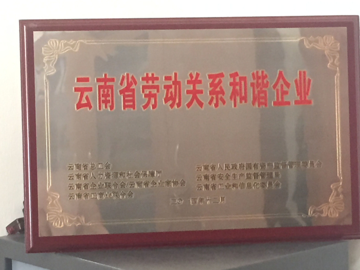 公司榮獲2014年度云南省勞動(dòng)關(guān)系和諧企業(yè)榮譽(yù)稱(chēng)號