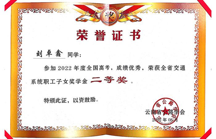 8月25日,云南省公路學(xué)會(huì )2022年度交通系統職工子女獎學(xué)金評審結果發(fā)布,公司申報的一名職工子女劉卓鑫獲得理科類(lèi)二等獎,獎學(xué)金1500元。2022年職工子女獎學(xué)金理工類(lèi)申報評獎的起分線(xiàn)為600分,文史類(lèi)申報評獎的起分線(xiàn)為635分,在被重點(diǎn)院校錄取的交通系統(含外系統公路學(xué)會(huì )團體會(huì )員單位)職工子女考生中擇優(yōu)評獎。公司職工子女劉卓鑫以669分的高考成績(jì),被復旦大學(xué)錄取。?劉卓鑫同學(xué)的父母是公司雙職工,…