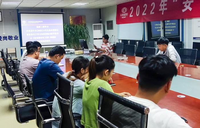 8月7日,五〇二直管部組織全體職工學(xué)習宣貫習近平總書(shū)記《論黨的青年工作》,共計63人參加。習近平總書(shū)記《論黨的青年工作》一書(shū),收錄了總書(shū)記2013年5月至2022年5月期間關(guān)于黨的青年工作的重要文稿60篇,是黨的理論建設的重大成果,是關(guān)于青年工作最全面、最系統的論著(zhù),為全黨全社會(huì )深入學(xué)習貫徹習近平總書(shū)記關(guān)于青年工作的重要思想提供了根本遵循,為促進(jìn)青少年一代健康成長(cháng)具有重大政治意義、理論意義、實(shí)踐意…