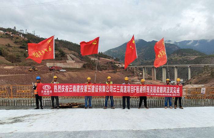 搶抓黃金期 奮戰100天 | 云蘭高速項目佳局互通F匝道橋現澆箱梁混凝土澆筑完成