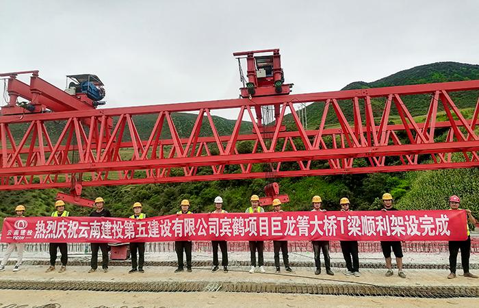 賓鶴高速八工區巨龍箐大橋雙幅梁板架設完成