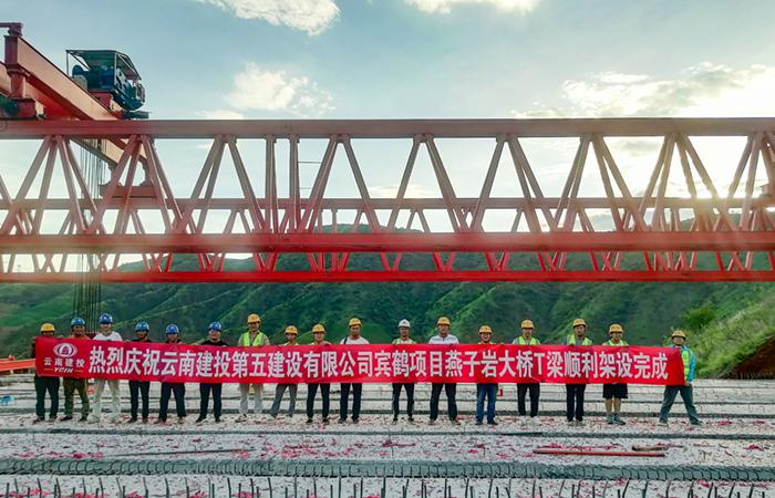 賓鶴高速項目八工區燕子巖大橋雙幅梁板架設完成