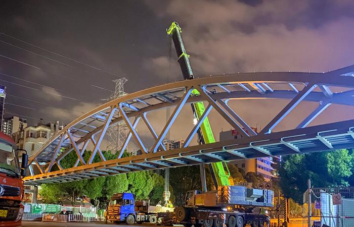 白龍路石閘立交過(guò)街人行天橋主梁吊裝完成
