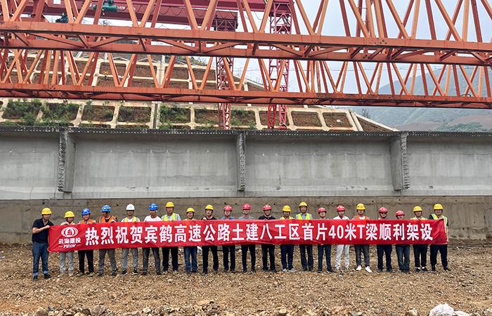 賓鶴高速巨龍箐大橋首片40米T梁完成架設