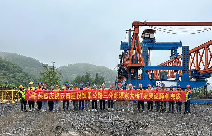 鎮果一級公路三標譚家大橋T梁順利架設完成