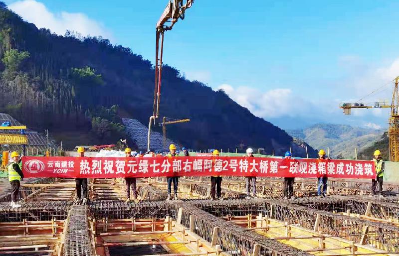 元綠高速右幅阿德2號特大橋第一聯(lián)現澆箱梁澆筑完成