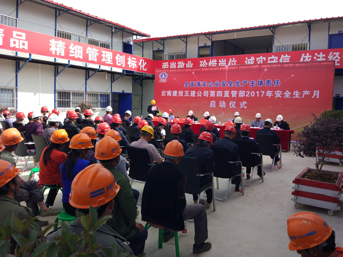 6月10日,緊隨公司安全生產(chǎn)月活動(dòng)的啟動(dòng),第四直管部組織所有項目在保山建投發(fā)展大廈項目舉行2017年安全生產(chǎn)月活動(dòng)啟動(dòng)儀式。本次啟動(dòng)儀式還邀請了集團城鄉投保山分公司工程部副經(jīng)理谷野、昆明監理公司保山大廈項目總監張宏燦出席,直管部部分班子成員、項目全體管理人員及勞務(wù)班組操作人員參加,啟動(dòng)儀式由直管部安全總監秦忠侯主持。 啟動(dòng)儀...
