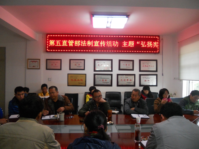 12月7日,第五直管項目部依次在昆明片區項目部及元江項目部開(kāi)展法制宣傳活動(dòng)。 直管部昆明片區法制宣傳活動(dòng)于7日上午利用周例會(huì )開(kāi)展,直管部領(lǐng)導班子成員、科室負責人、項目經(jīng)理共18人參加,元江項目部活動(dòng)利用晚上綜合大檢查會(huì )議開(kāi)展,直管部領(lǐng)導班子成員、管理人員共34人參加。 本次活動(dòng)主要圍繞...