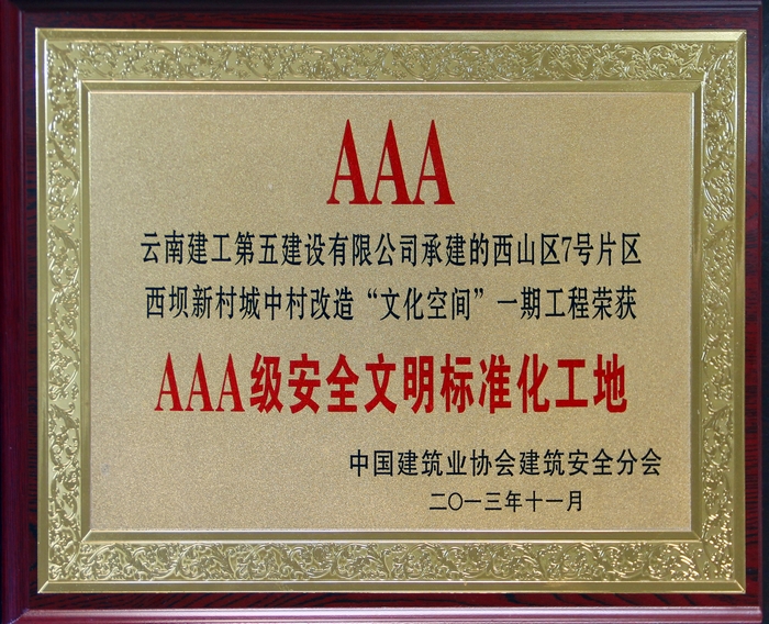 文化空間項目喜獲2013年“AAA級安全文明標準化工地”