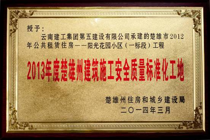楚雄市2012年保障房喜獲“2013年度楚雄州建筑施工安全質(zhì)量標準化工地”稱(chēng)號
