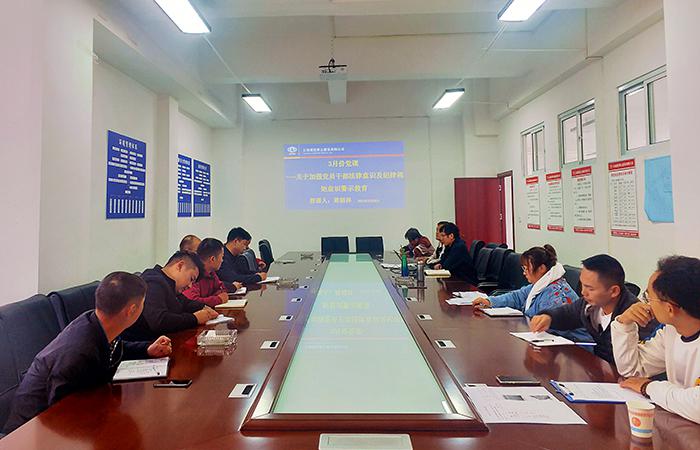 ?4月2日早上,路橋二部組織職工在直管部會(huì )議室學(xué)習公司黨委委員、紀委書(shū)記喬虎軍在公司2021年度黨的建設暨黨風(fēng)廉政建設和反腐敗工作會(huì )上所作的《聚焦監督專(zhuān)責強化執紀問(wèn)責為實(shí)現公司“十四五”目標開(kāi)好局提供堅強紀律保證》工作報告,深入學(xué)習領(lǐng)會(huì )會(huì )議精神,在昆班子成員、科室負責人、二線(xiàn)職工共12人參加學(xué)習。黨支部書(shū)記鄧瓊聲帶領(lǐng)大家深入學(xué)習了在黨風(fēng)廉政建設和反腐敗工作中推進(jìn)日常教育常態(tài)化、注重提升廉政談話(huà)質(zhì)效…